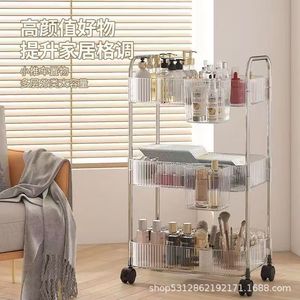 置物架塑料小推车家用可移动厨房浴室收纳架旋转落地零食收纳架