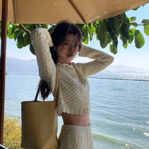 气质温柔风镂空钩花针织开衫半身裙两件套时髦洋气甜美超好看套装