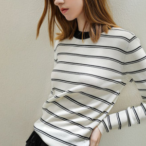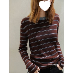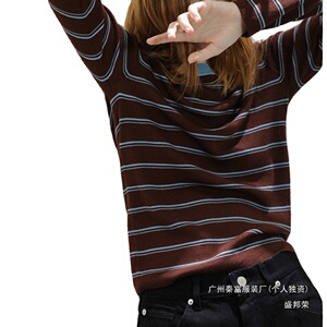 秋冬季条纹针织衫女撞色法式复古毛衣装打底衫长袖套头新款厂