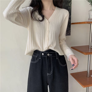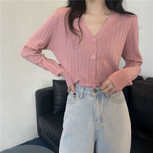 春装粉色v领针织打底衫女开衫设计感小众感内搭显瘦别致上衣厂家