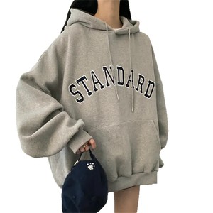 3色 韩版宽松字母绣花连帽卫衣女春秋休闲长袖外套加厚加绒上衣潮