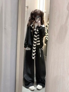 秋季套装2025新款女韩系出游氛围感穿搭假两件卫衣休闲裤子两件套