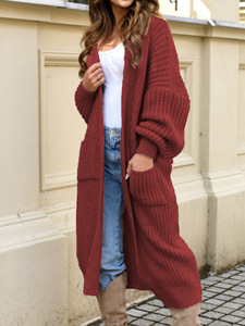 欧美大码针织衫毛衣女跨境秋冬新款宽松口袋纯色长款女士开衫外套