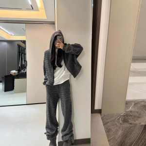 ce25ss秋冬新款重工logo拉链连帽外套+休闲裤时尚休闲套装
