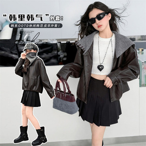 女童皮衣外套春秋2025新款儿童洋气时髦夹克中大童女孩春秋上衣潮