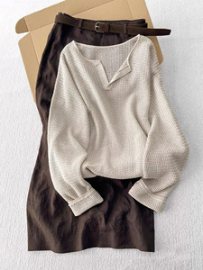 早秋穿搭一整套大方得体气质女神范韩系独特套头针织衫裙子套装