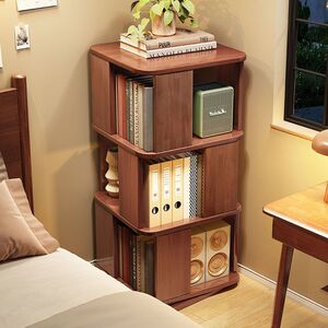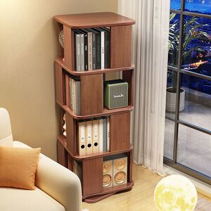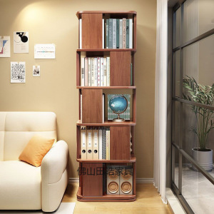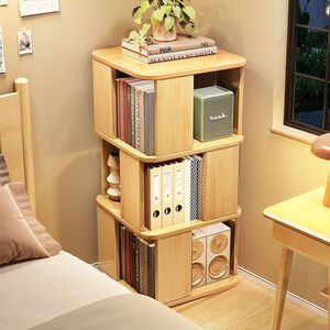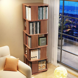 全实木旋转书架360度书柜儿童书本收纳架家用客厅多层落地置物架