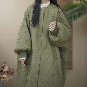 年新款宽松菱格夹棉秋冬天外套女春秋中长款百搭休闲风衣棉衣