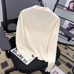 polo领长袖针织开衫翻领坑条修身洋气显瘦百搭外套女2025秋冬上衣