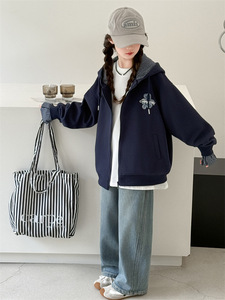 女童外套秋装2025新款洋气小女孩时尚宽松上衣开衫连帽长袖卫衣潮