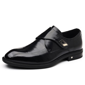 头层牛皮新款男士商务皮鞋一脚蹬真皮尖头男鞋魔术贴潮流单鞋男