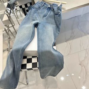 新款加绒直筒浅蓝色牛仔裤女加厚冬季长裤高腰新款显瘦宽松ins风