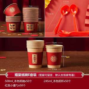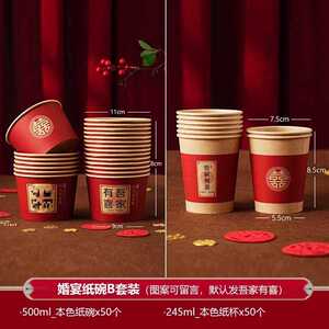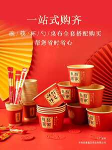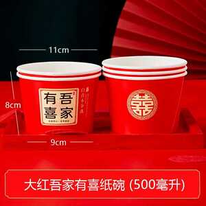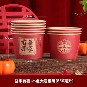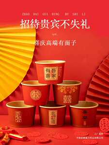 结婚喜碗加厚红色圆形纸碗婚礼酒席碗筷婚宴用纸杯一次性餐具套装
