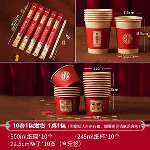 婚宴纸碗C套装 [100碗+100杯+100筷+10桌布]