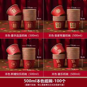 金箔_结婚纸碗100个 [图案留言,默认发500ml喜事连连