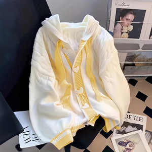 奶fufu慵懒连帽毛衣外套女小个子秋冬穿搭宽松外穿减龄针织开衫