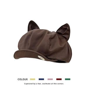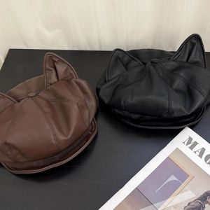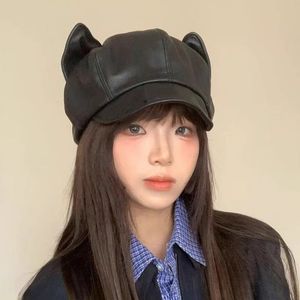 2025新款日系复古可爱猫耳朵皮质贝雷帽子女秋季甜酷百搭画家帽潮