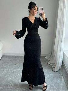 轻奢修身包臀黑色显瘦长裙鱼尾裙法式v领长袖连衣裙女秋新款礼服