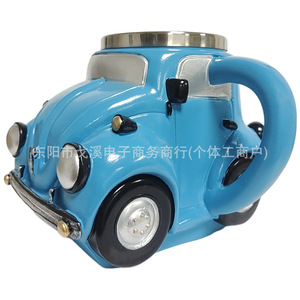2025新款跨境独立站创意汽车摆件水杯甲壳虫咖啡杯家居树脂马克杯