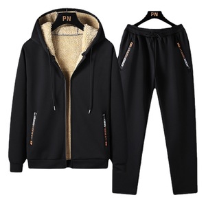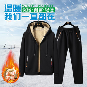 冬季加绒加厚羊羔绒外套休闲运动套装男士潮流衣服裤子大码男套装
