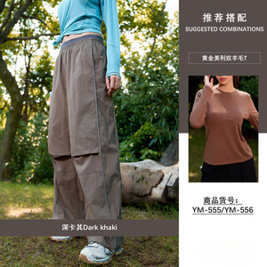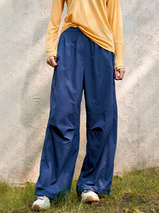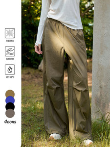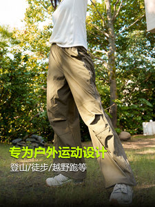跨境新款户外女士褶皱尼龙宽松工装裤速干透气徒步登山长裤束脚裤