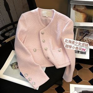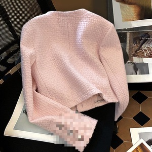 粉色小香风短款外套女秋季新款法式高级名媛气质韩式粗花呢上衣
