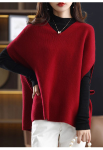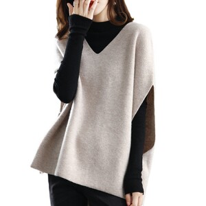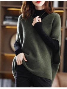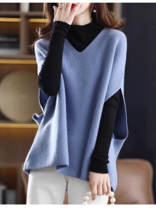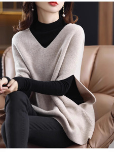 落肩马甲休闲春秋叠穿百搭纯色蝙蝠袖大码v领针织衫女式套头宽松
