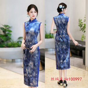 复古国风改良新中式长款港风旗袍2025初秋款修身显瘦丝绒无袖旗袍