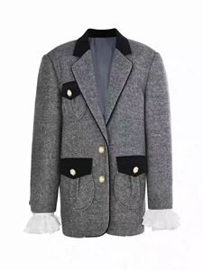 2025秋季新款法式通勤风复古摩登气质简约百搭撞色西装外套上衣女