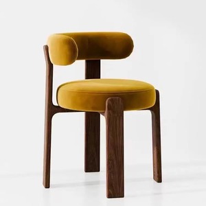 中古风实木餐椅家用现代简约靠背化妆椅实木胡桃色酒店休闲洽谈椅