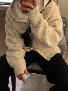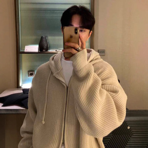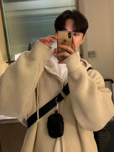 美式针织开衫毛衣外套男秋冬新款复古慵懒风潮牌百搭纯色拉链线衣