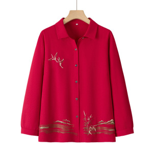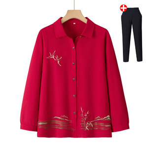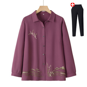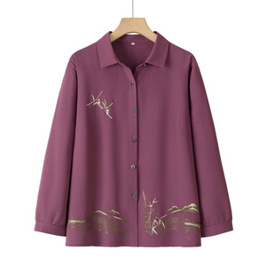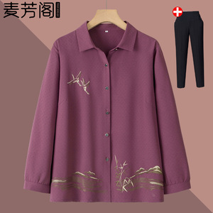 中老年人秋装长袖衬衫女奶奶秋季翻领薄款外套妈妈上衣老太太衣服
