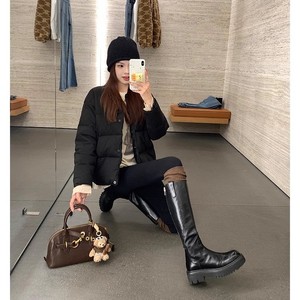 牛皮版~葡萄妈同款真皮厚底不过膝骑士靴女显瘦靴子后拉链长筒靴