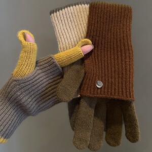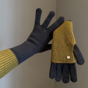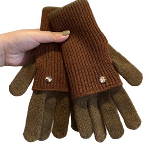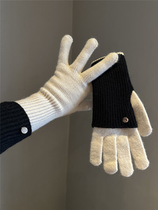 美拉德两用拼色针织毛线手套女士冬季露指可触屏保暖护腕骑行学生