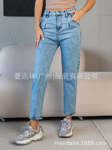 Женские зимние джинсы高腰长裤小脚牛仔裤棉