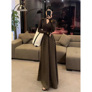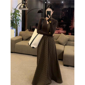 法式轻熟气质赫本风长袖t恤女早春新款浅春系穿搭两件套半身裙装