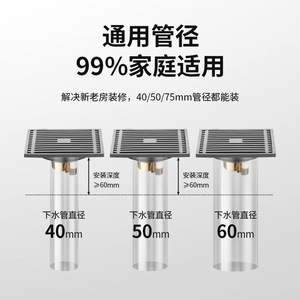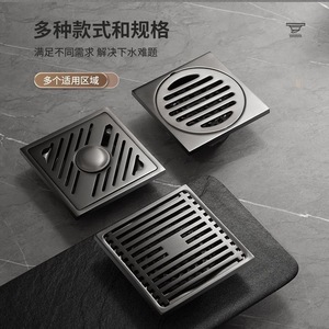 水镀灰色不锈钢地漏酒店卫生间洗衣机专用方形下水道防虫防臭地漏