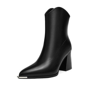 2025网红爆款尖头粗跟高级感小短靴女秋冬高跟鞋小个子法式小踝靴