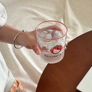 可爱苹果草莓kt猫高硼硅玻璃耐高温玻璃杯套装高颜值卡通水杯家用