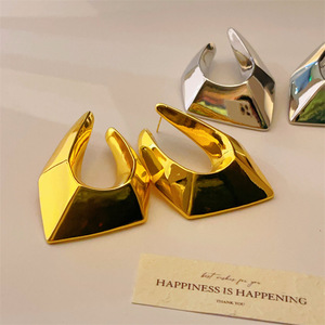 欧美铜合金几何夸张大耳环电镀18K金时髦冷淡风极简耳钉耳饰品