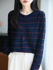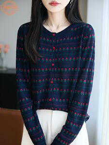 郁金香提花针织开衫女早秋减龄外套毛衣新款精纺薄外搭小衫上衣