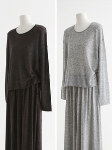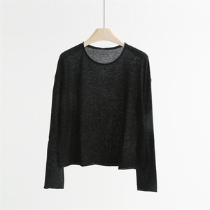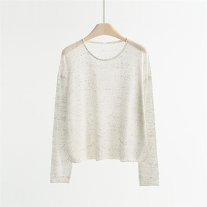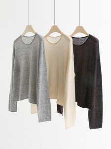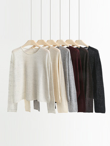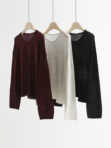 肌理感缤纷纱亚麻羊毛圆领卷边宽松长袖针织衫通勤内搭毛衣A65331