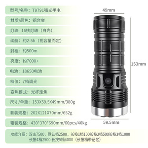 全新强光手电大功率户外充电铝合金led探照灯21700一体仓超亮远射