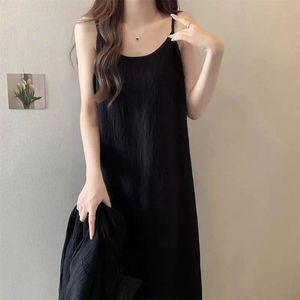 2025新款褶皱吊带连衣裙慵懒风外穿内搭宽松大码连衣裙女厂家直销