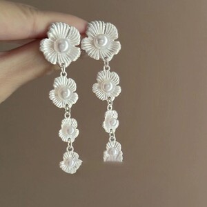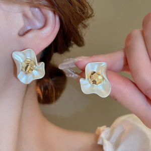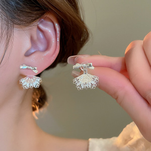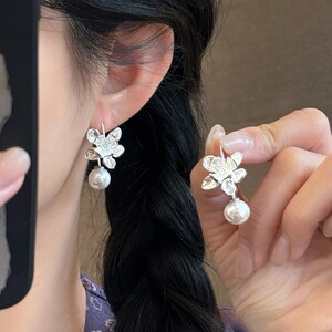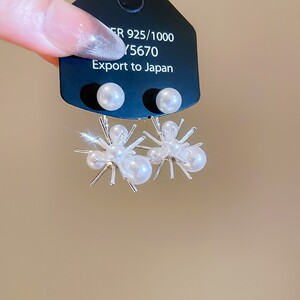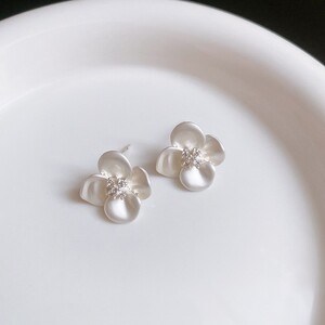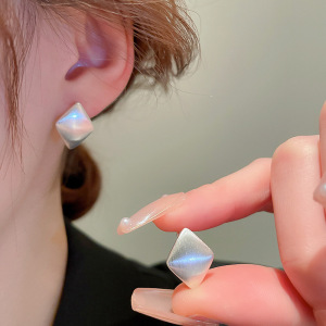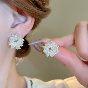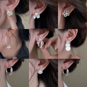 银针超闪锆石珍珠几何圆形花朵耳环简约个性耳钉小众设计感耳饰女