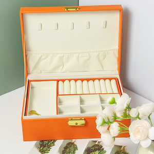 木盒双层分隔首饰盒带锁防潮大容量项链戒指收纳收纳盒一件代发