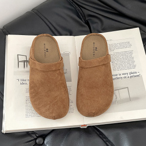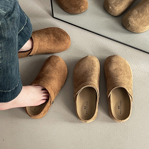 复古绒面百搭女生包头拖鞋秋季时尚简约休闲半拖鞋厚底增高勃肯鞋