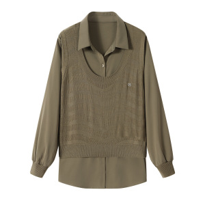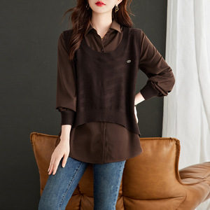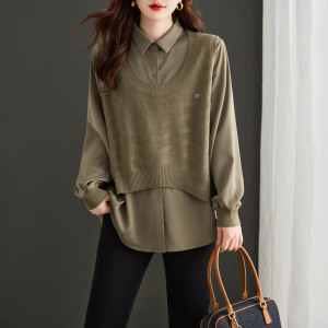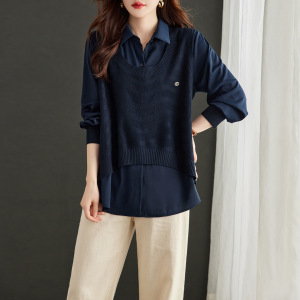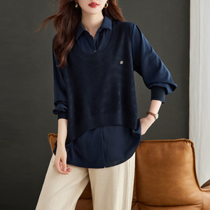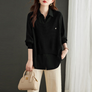 假两件套拼接衬衫女春秋外穿毛衣女2025年新款时尚气质漂亮打底衫
