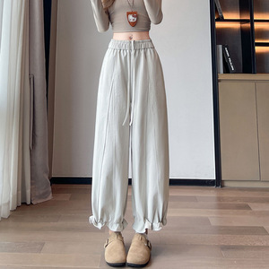 高腰显瘦九分花苞休闲裤女2025秋季新款宽松垂感阔腿木耳边气球裤