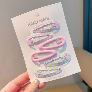 儿童侧刘海夹2025新风格女孩破碎的头发Bb夹糖果色波浪发夹可爱的